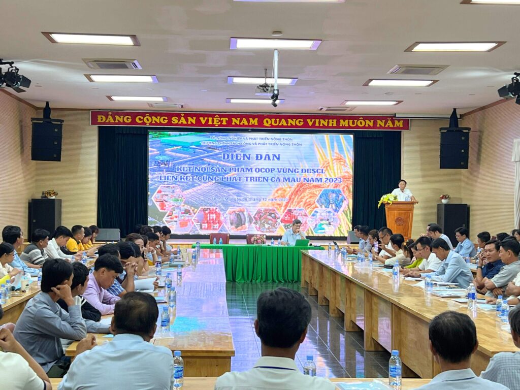 Trường Chính sách công và Phát triển nông thôn phối hợp tổ chức Diễn đàn kết nối sản phẩm OCOP vùng Đồng bằng Sông Cửu Long liên kết cùng phát triển Cà Mau năm 2023.